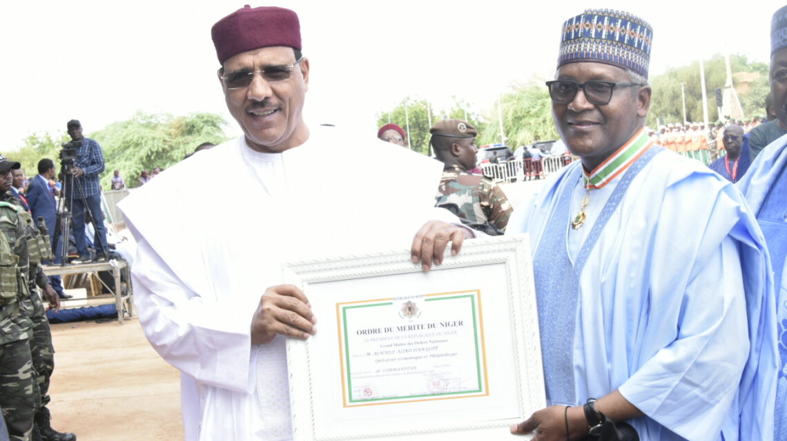 President/Chief Executive of Dangote Industries Limited, Aliko Dangote has been conferred with the Commander of the Order of Merit of Niger award by the President of the Republic of Niger, His Excellency Mohamed Bazoum in Niamey.