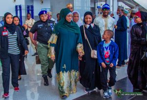 The First Lady’s return marks the conclusion of her spiritual exercise in the holy land, as she resumes her engagements in supporting humanitarian and social development initiatives across the state.