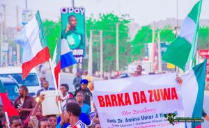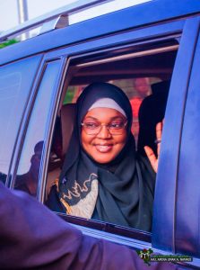 The First Lady of Jigawa State, Ambassador Dr. Amina Umar Namadi, received a rousing welcome from thousands of jubilant supporters and well-wishers upon her return from the Kingdom of Saudi Arabia, where she had travelled to observe the lesser Hajj, also known as Umrah.