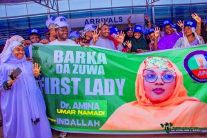 The First Lady of Jigawa State, Ambassador Dr. Amina Umar Namadi, received a rousing welcome from thousands of jubilant supporters and well-wishers upon her return from the Kingdom of Saudi Arabia, where she had travelled to observe the lesser Hajj, also known as Umrah.